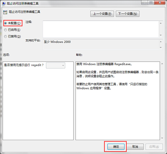 三、然后在打開的窗口中點擊的“未配置”,最后點擊“確定”即可,如下圖所示: