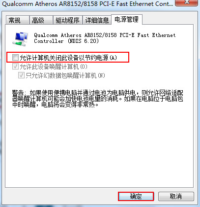 5、配置窗口中選擇“電源管理”頁面,然后勾選掉“允許計(jì)算機(jī)關(guān)閉此設(shè)備以節(jié)約電源”選項(xiàng),如下圖所示: