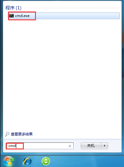 1、打開開始菜單,輸入cmd,點(diǎn)擊進(jìn)入,如圖所示: