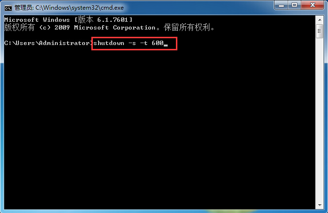 2、在命令提示符窗口中,輸入命令shutdown -s -t xxx,其中xxx為秒數(shù),即關(guān)機(jī)倒計(jì)時(shí)的秒數(shù),比如我們希望10分鐘后定時(shí)關(guān)機(jī),就輸入shutdown -s -t 600,按回車鍵確定,如圖所示: